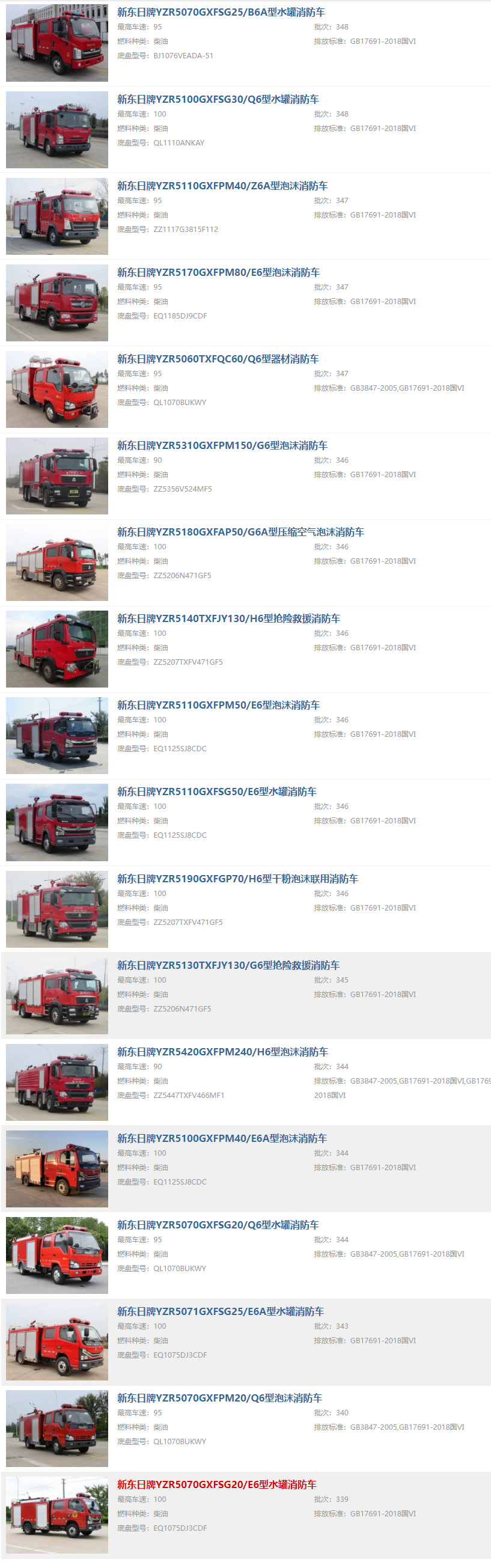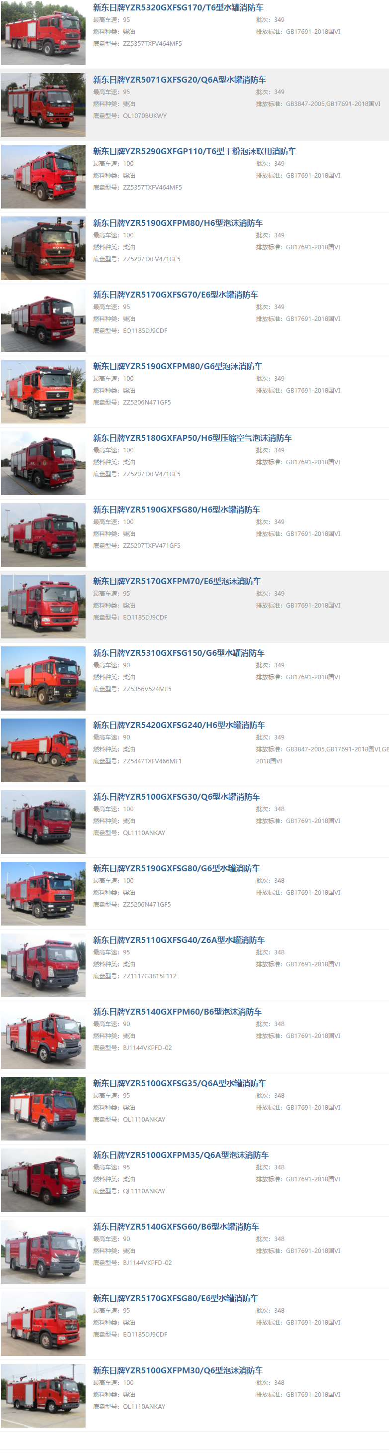 公司車型很齊全,從2-25噸,所有噸位的消防車都有。質(zhì)量相當(dāng)不錯。