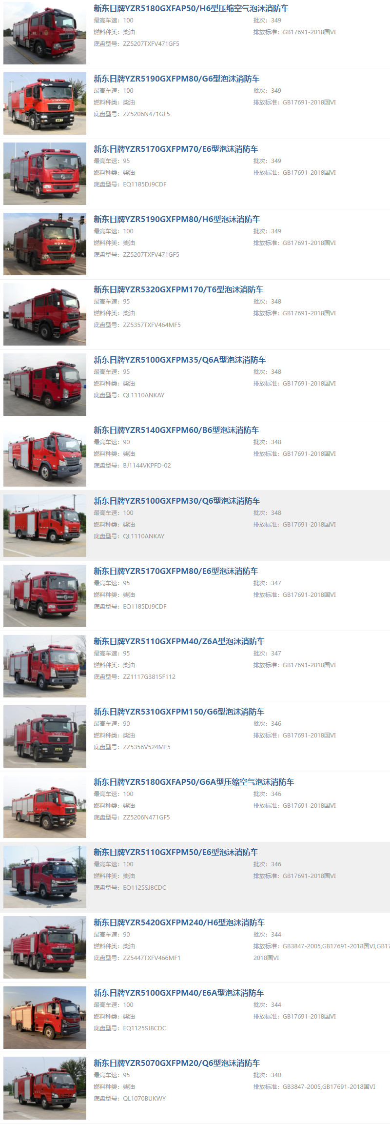 從上面數(shù)量可以看出,泡沫消防車還是集中在重型車上,輕型泡沫消防車數(shù)量很少。