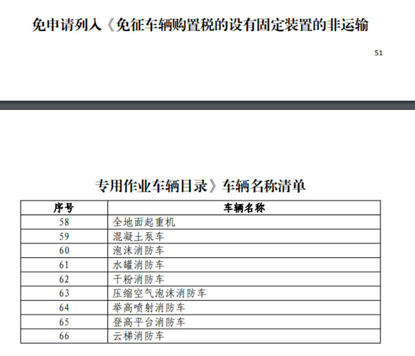 據(jù)了解器材消防車和搶險救援消防車目前不具備免征的條件,所以這兩款車沒有免征。